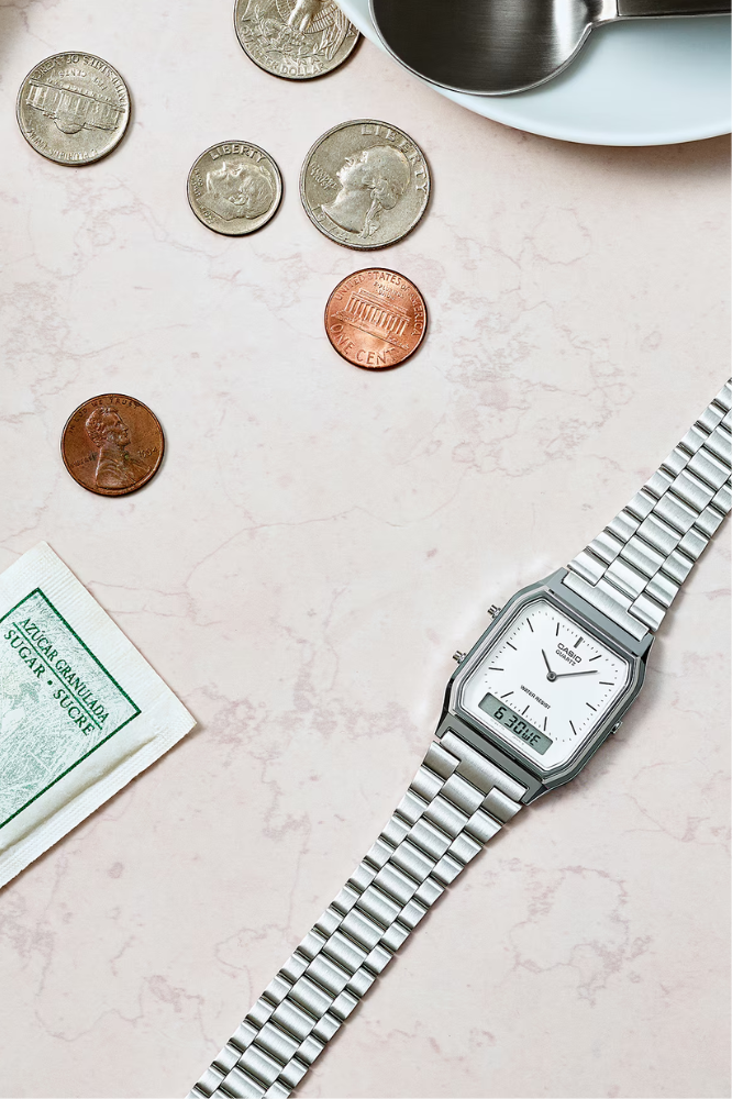 تجمع بين الأصالة والعملية في تصميم أنيق يجمع بين العقارب الكلاسيكية والشاشة الرقمية العصرية